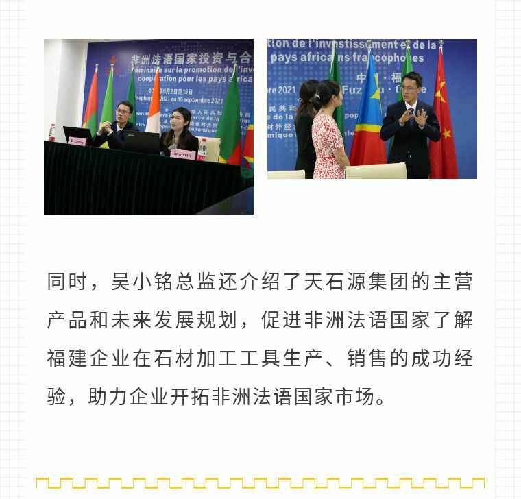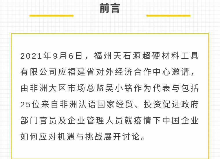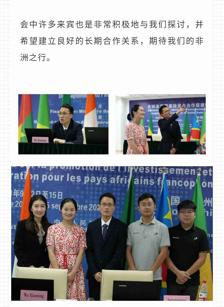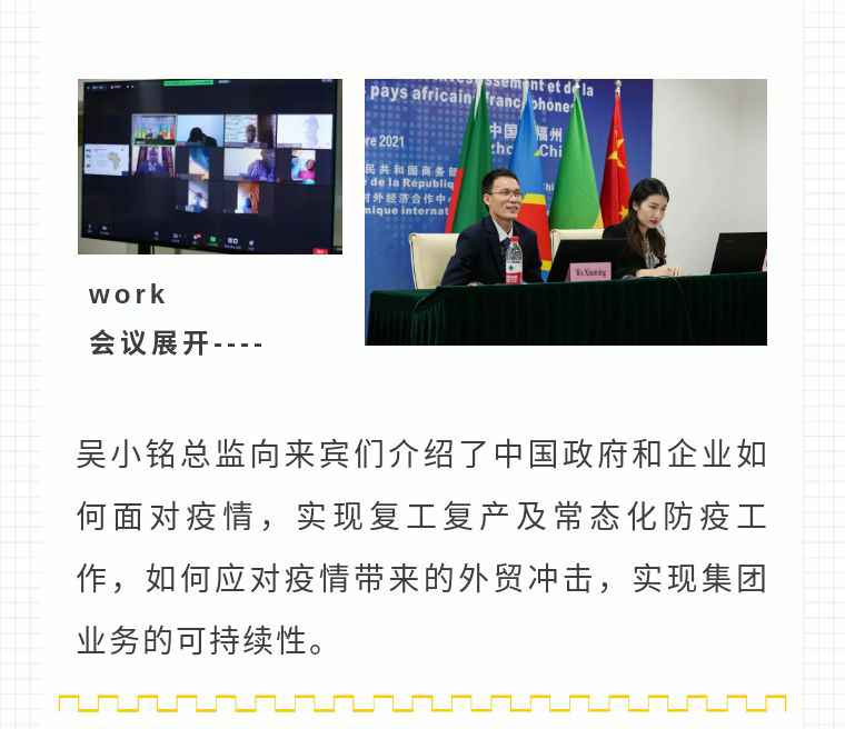 2021年9月6日,开云手机入口站·开Yun手机链接-开云(中国)应福建省对外经济合作中心邀请,由非洲大区市场总监吴小铭作为代表与包括25位来自非洲法语国家经贸、投资促进政府部门官员及企业管理人员就疫情下中国企业如何应对机遇与挑战展开讨论。